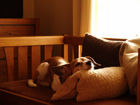 帰宅し、ダンナに「パンやさんにね、うみのジャムパンがなかったの、だからね、うみ、たまらんの。うみはじゃむぱんたべたかったなぁ。」と愚痴りながら、クロワッサンの中からウインナーだけをひっぱりだしてむしゃむしゃ食べまくっていました。そして、私のカマンベールチーズ入りパンまでも横取りし、中身のカマンベールチーズだけをベロベロ食し、私には、カマンベールチーズ抜きのカマンベールチーズパンとぐちゃぐちゃになったクロワッサン(ほとんど粉々)が与えられました。